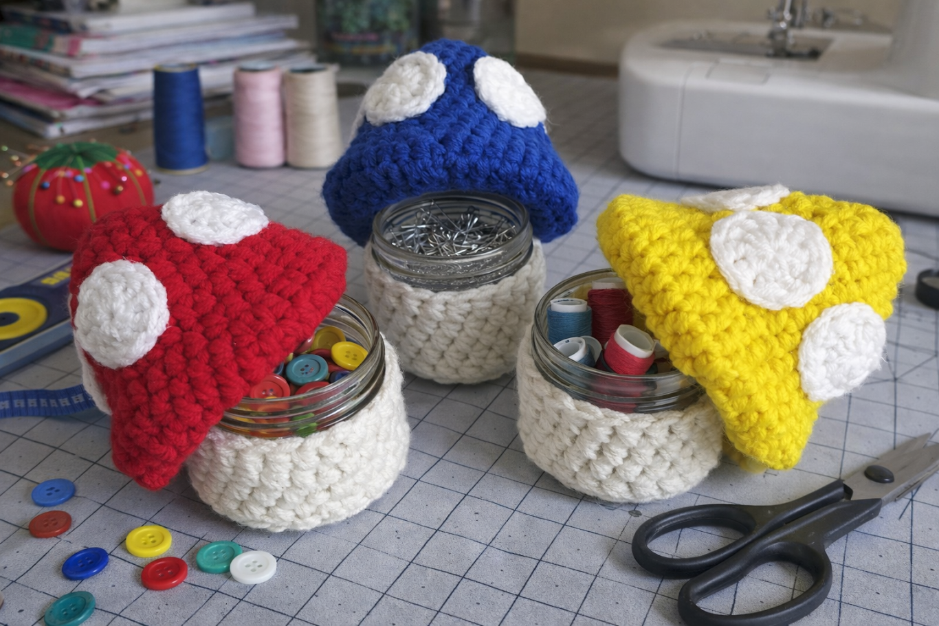 The Mushroom Stash Jar is a 4 oz glass jar disguised in a hand-crocheted mushroom cap, permanently secured for a clean, seamless finish. What appears to be decor is actually a discreet, smell-proof container made for everyday use.